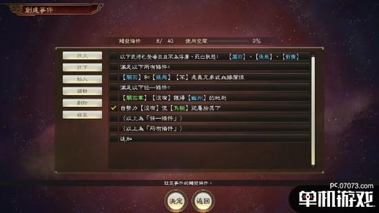 此外事件编辑功能也将在本次免费更新中追加功能,玩家可设定OR、AND、有无义兄弟或血缘关系、是否拥有地利、异民族从属等发生条件。
