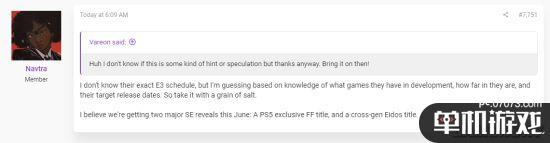 之后他又补充说:“我并不知道他们E3的准确时间表,但我基于对他们开发的游戏,开发时间和预计的发行日期等消息来猜测的,所以我说的内容大家要打点折扣听。但我相信在今年6月我们会看到SE公布两款新游戏,一款是PS5独占的《最终幻想》新作,另一款式Eidos的跨世代游戏。”