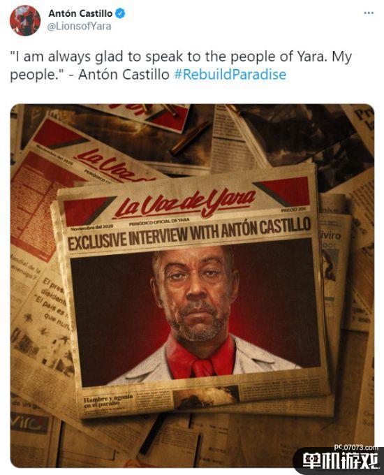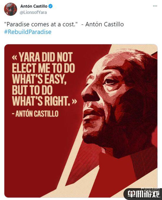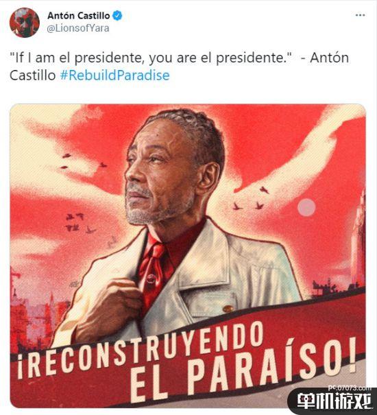 《孤岛惊魂6》官方这几天开始了整活模式,近日连续发布了以大反派安东·卡斯蒂约(“炸鸡叔饰演”)的口吻的推特。虽说图片显示的推特账户并不真是存在,但这也算是系列的传统艺能了(而且游戏的英国官方账号也把名字和头像改成如图所示)。而这些推特及所配的图片颇具味道。