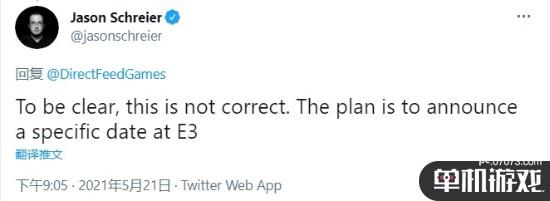 一位网友声称,他听到的消息是B社会在E3上公开一个“2022年”的发售窗口,不过Jason Schreier回复称:“要明确的是,这说法并不对。计划是在E3上公布一个具体的日期(a specific date)。”