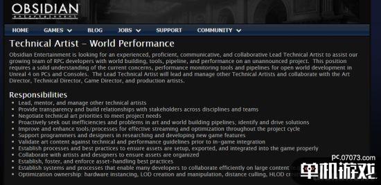 根据黑曜石工作室的官方网站招聘信息,他们目前正在筹备一款尚未公布的开放世界游戏。