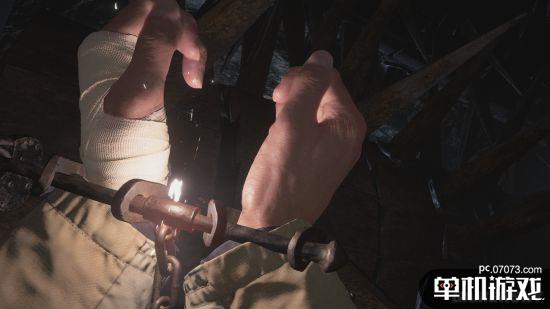 这段同样无法上图,但是也算是流程中的经典一幕:很多玩家都在想为什么伊森要直接把两只手都从钩子上硬拔下来。