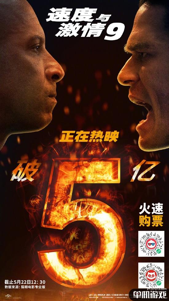 环球影业宣布:《速度与激情9》在中国内地总票房突破5亿元。