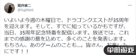 今日(5月24日),堀井雄二发推称,这周四将迎来《勇者斗恶龙》35周年纪念,除了当天会进行35周年纪念特别节目以外,也表示将会公布“那个游戏”的相关内容。